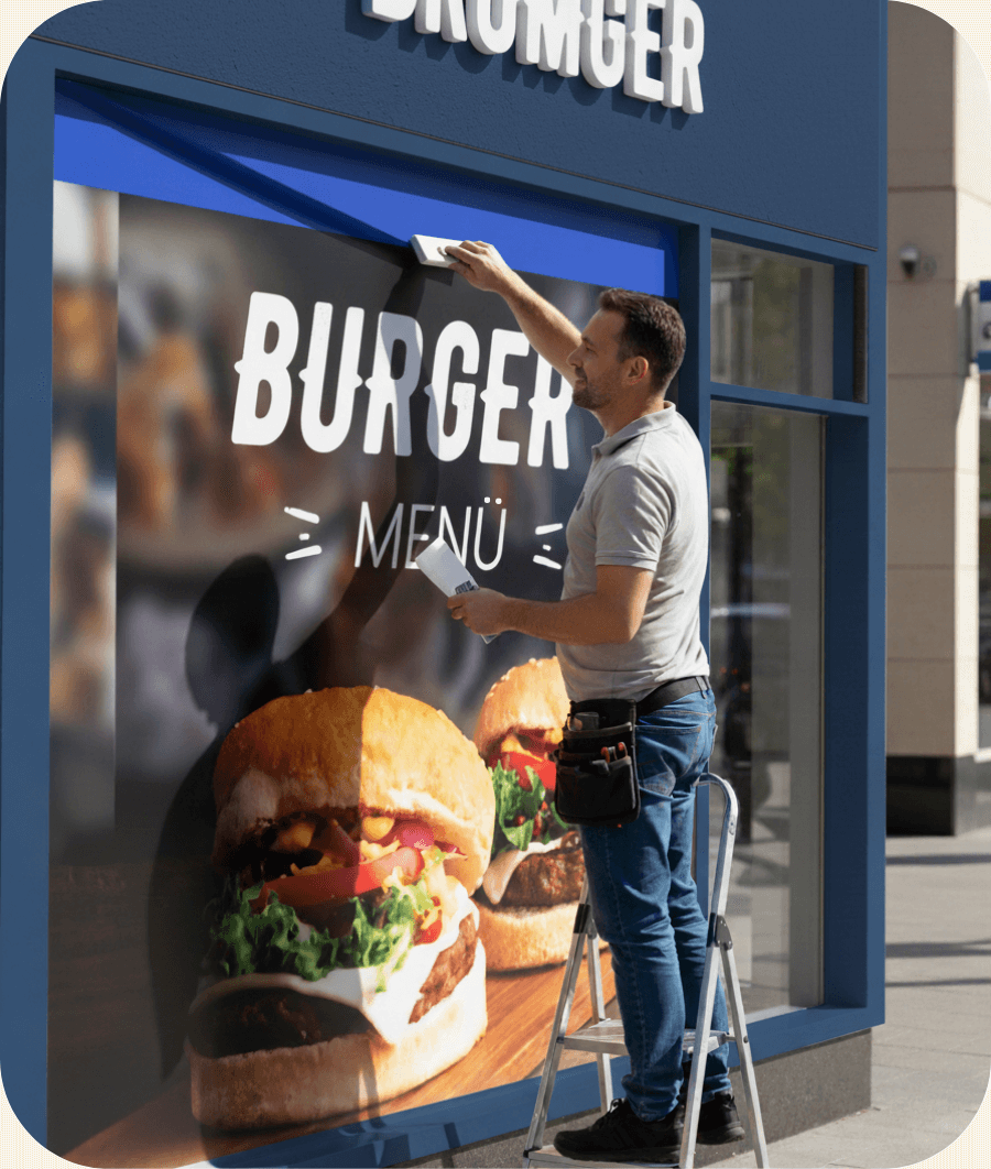 Ablakfólia, falmatrica, feliratozás, cégtábla, festett dekoráció